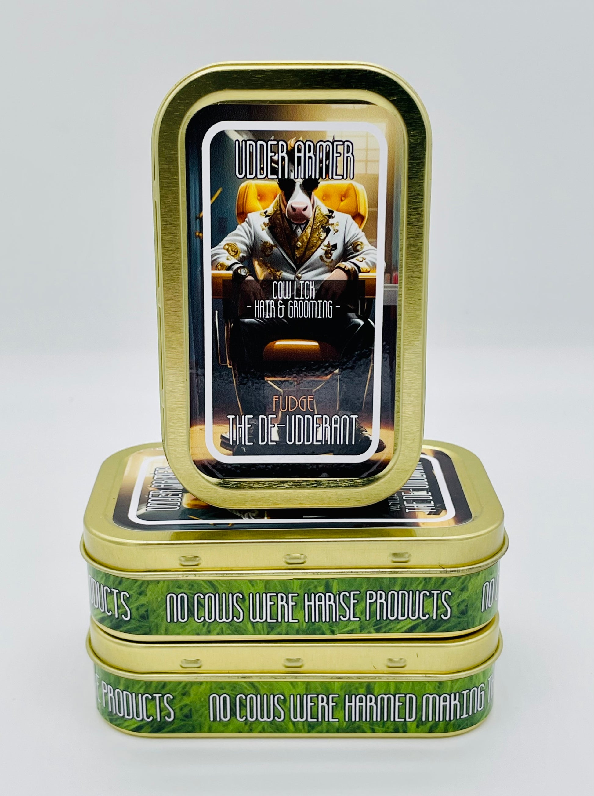 Introducing UDDER ARMER Natural De-Udderant, now with a fudge-scented twist! This natural, organic, and vegan deodorant is ready to sweeten your underarm experience. Crafted with the finest natural ingredients, UDDER ARMER provides long-lasting odor protection while being gentle on your skin. Embrace the irresistible aroma of fudge as you go through your day, feeling confident and fresh. Let the delightful scent of fudge transport you to a world of indulgence, all while knowing that you're making a sustainable and ethical choice for your personal care routine. Say goodbye to harsh chemicals and hello to a naturally delicious underarm deodorizing experience. It's time to UDDERly enjoy the sweetness of UDDER ARMER Natural De-Udderant with its fudge scent!