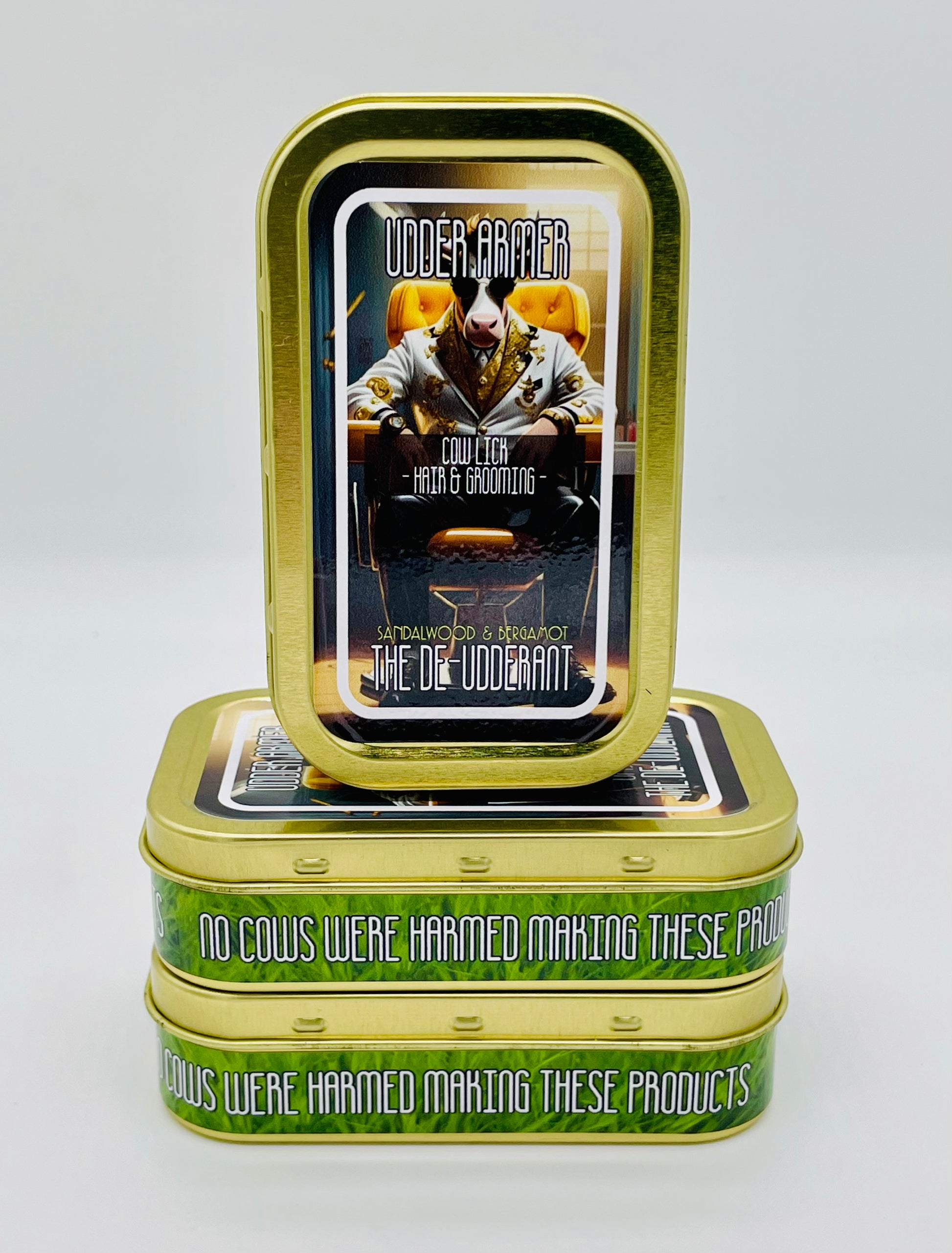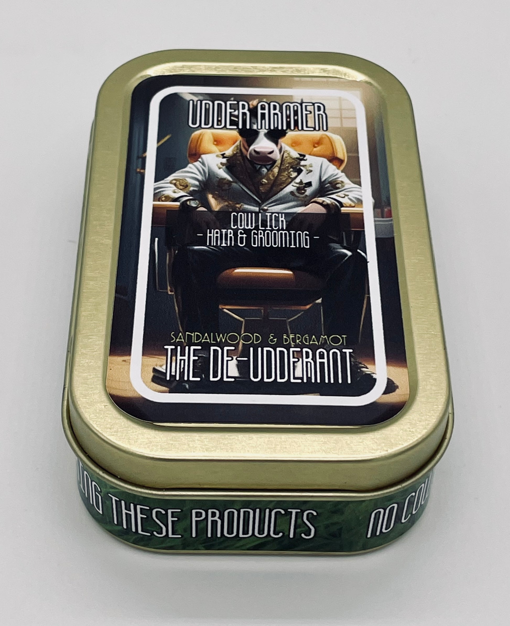 Introducing UDDER ARMER Natural De-Udderant in the delightful Sandalwood and Bergamot scent! This natural, organic, and vegan deodorant is ready to keep you feeling fresh and udderly confident all day long. Crafted with the finest natural ingredients,